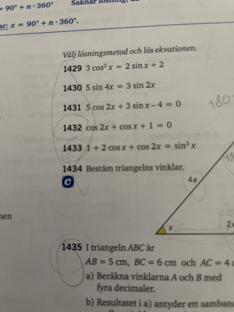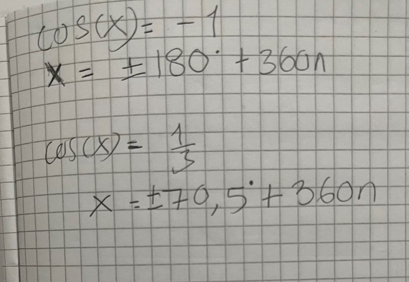 2. Lösningsmängden x = ±\pm 180° + n•360° kan skrivas om på ett enklare sätt. Markera vinklarna i enhetscirkeln så ser du det.