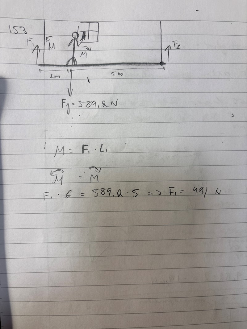 Hej! Jag tänkte att jag börjar med att räkna ut kraften i F1 genom att sätta momentpunkten i F2 och genom momentjömvikt räkna ut kraften i F1 men Vrf blir detta fel?