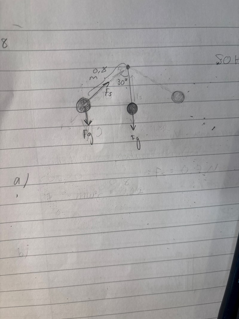 Hej! Jag känner inte igen den här typen av uppgifter för mekanik. Jag misstänker att jag ska använda centripetalkraften, men hur går jag vinkelhastigheten när jag inte vet tidsenheten?