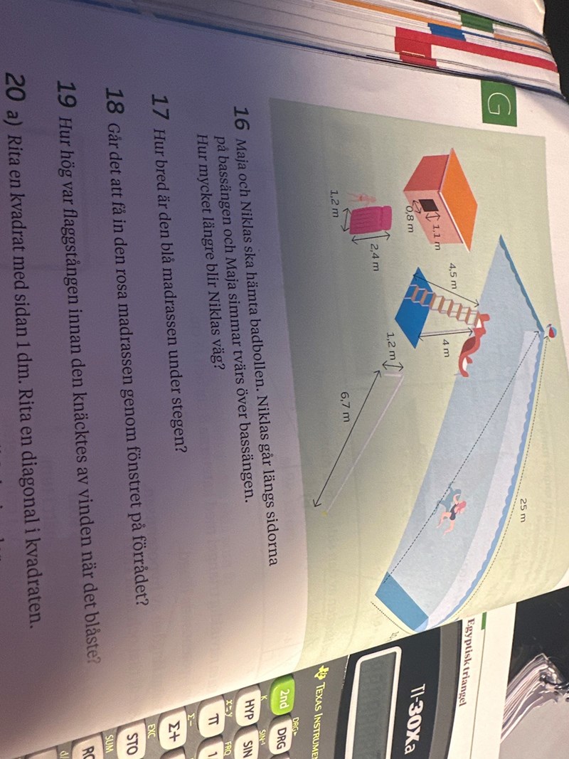 Ser du att stegen är hypotenusan i en rätvinklig triangel som har stången som en av kateterna?