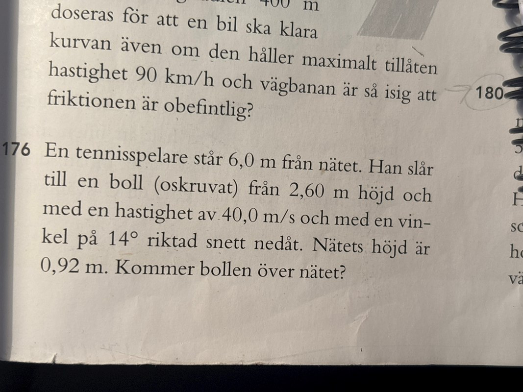 - Om du lägger x-axeln i höjd med nätkanten så är ursprungshöjden y0 = 2,6-0,92 = 1,68 meter och du ska ta reda på om y är större än eller mindre än 0 meter när bollen når nätet.