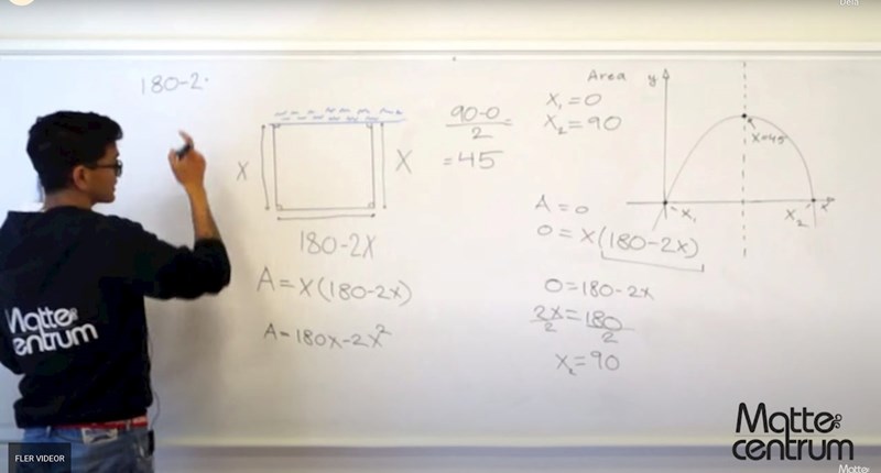 I frågan så ville man veta max punkten för denna graf och det gjorde de i videolösningen genom att hitta rötterna och max punkten är i mitten av rötterna, för kurvan har sin topp där(bild 2).