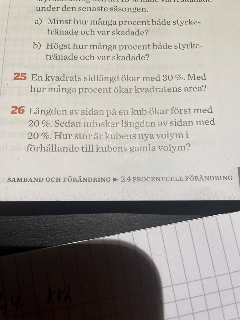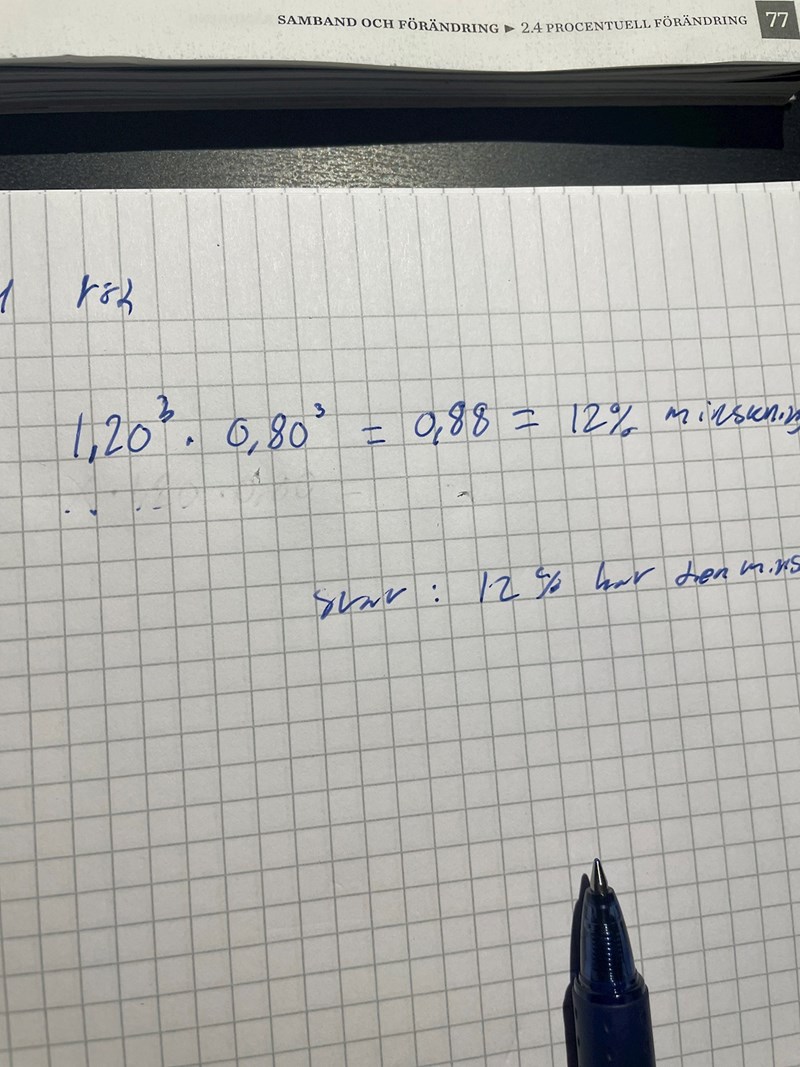 Då får man också svaret att volymen minskar med 12%.