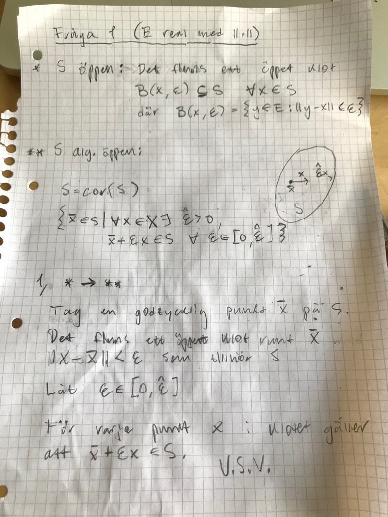 Här är en ansats till första frågan. Framförallt skulle det uppskattas om någon kan säga om min definition av "algebraiskt öppen" stämmer utifrån förklaringen i uppgiften. Och när det kommer till att bevisa motsatsen (om S konvex) vet jag inte ens vart jag ska börja.