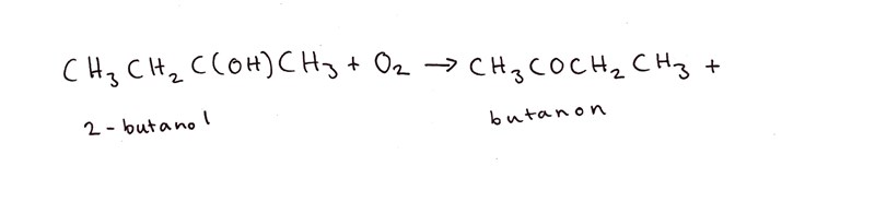 Jag vet: föreningen som bildas är butanon. Ämnesklass är ketoner. Nu sitter jag fast i att skriva reaktionsformeln.