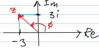 OK, då noterar vi att z ligger i 2:a kvadranten. Då bör du tämligen direkt kunna uttrycka med trigonometri. OK?