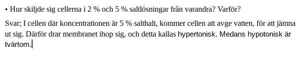 • Vad skulle hända med djurceller (t.ex. röda blodkroppar) i lösningarna A, B respektive C?