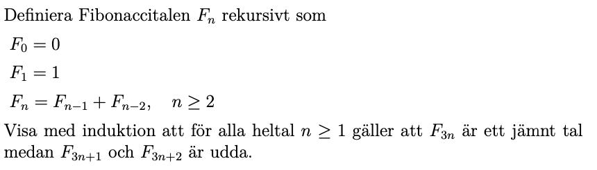 F_3n=0 jämnt, F_3n+1=1 udda F_3n+2=1 udda -> ok