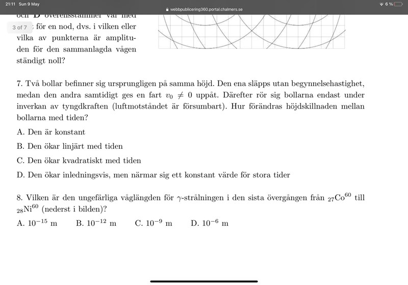 Antog att sista termen i formeln var tyngdkraftens inverkan, men t^2 är väl inte linjärt? Rätt svar var nämligen B). Eller, har man kanske tänkt på något annat vis?