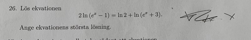 Bedinsis skrev:Om du kallar ex för y lite tillfälligt, kan du då lösa den för den nu införda variabeln y?