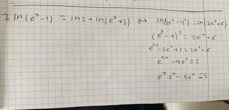Om du kallar ex för y lite tillfälligt, kan du då lösa den för den nu införda variabeln y?