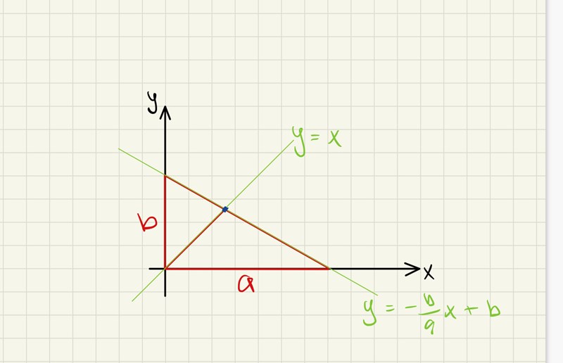 Du kan även lösa den genom att räkna ut avståndet till origo hos skärningspunkten till linjerna y = x och y = x + . Se figur nedan.