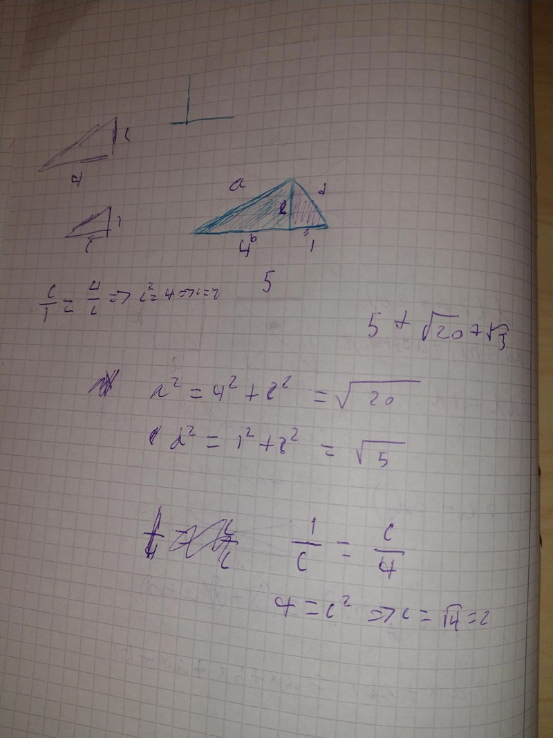 Du har skrivit att a2=42+82=20a^2=4^2+8^2=\sqrt{20}, men det är inte sant, a2 = 20 och a=20a=\sqrt{20}, och du har gjort samma miss på raden nedanför.
