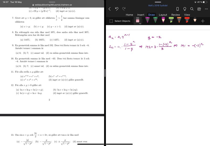 Jag summerade termerna (och löste uppgift 10 av bara farten) och såg att summan aldrig blev 192.