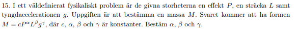 Så räcker facits dimensionsanalys? Och α är ju dimensionslöst, ska man ange även det då? För jag tänkte att de bara ville ha analys på just det, men det kanske är meningen att alla tre ska analyseras på så vis.