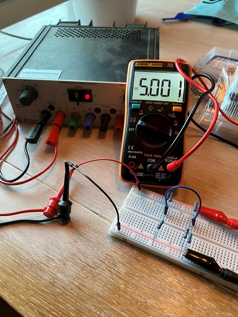 Jag blev lite sugen och kopplade upp kretsen i uppgiften, så här: