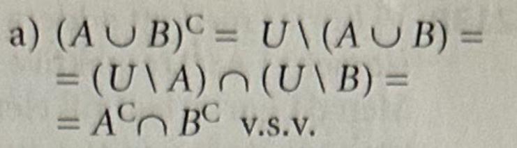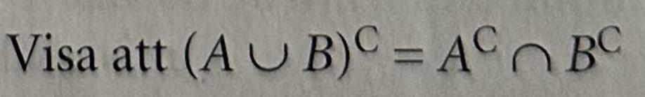 Hej, jag förstår inte riktigt hur man vet att det ska vara ∩ på andra raden av beviset. Jag förstår att man kan visa det med ett venndiagram, men finns det något sätt att förstå/förklara det algebraiskt?