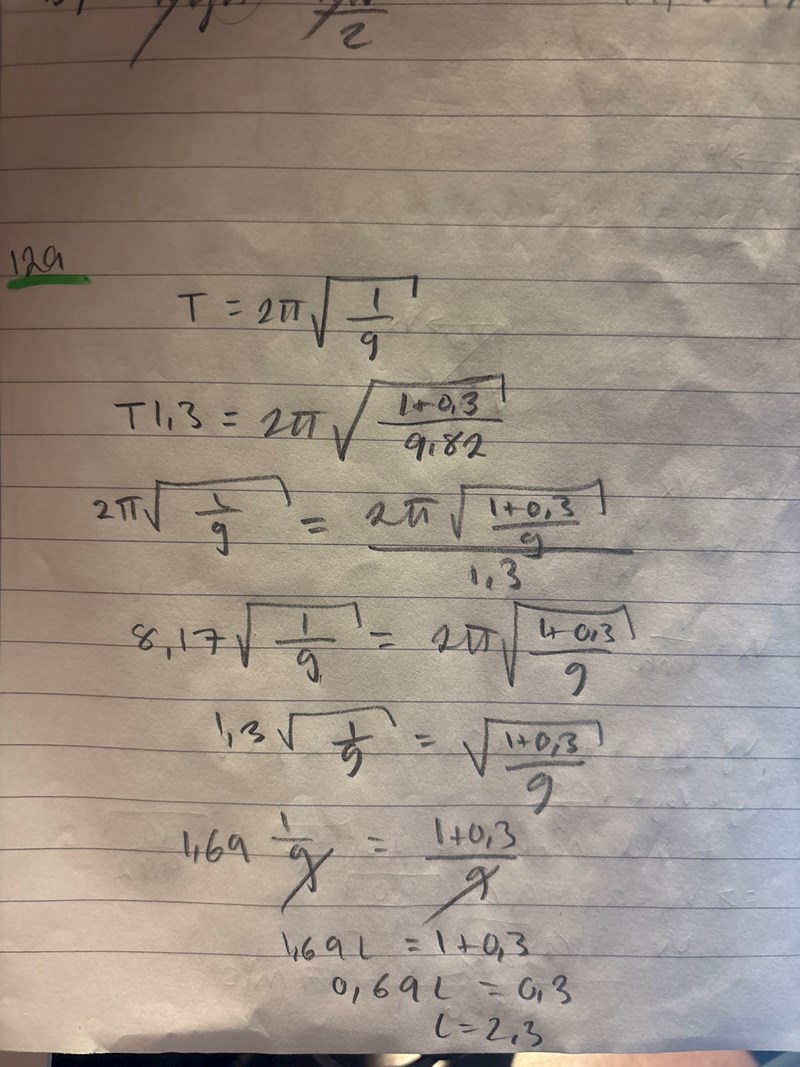 Det ser rätt ut ända till slutet, men lös 0,69L = 0,3 en gång till.