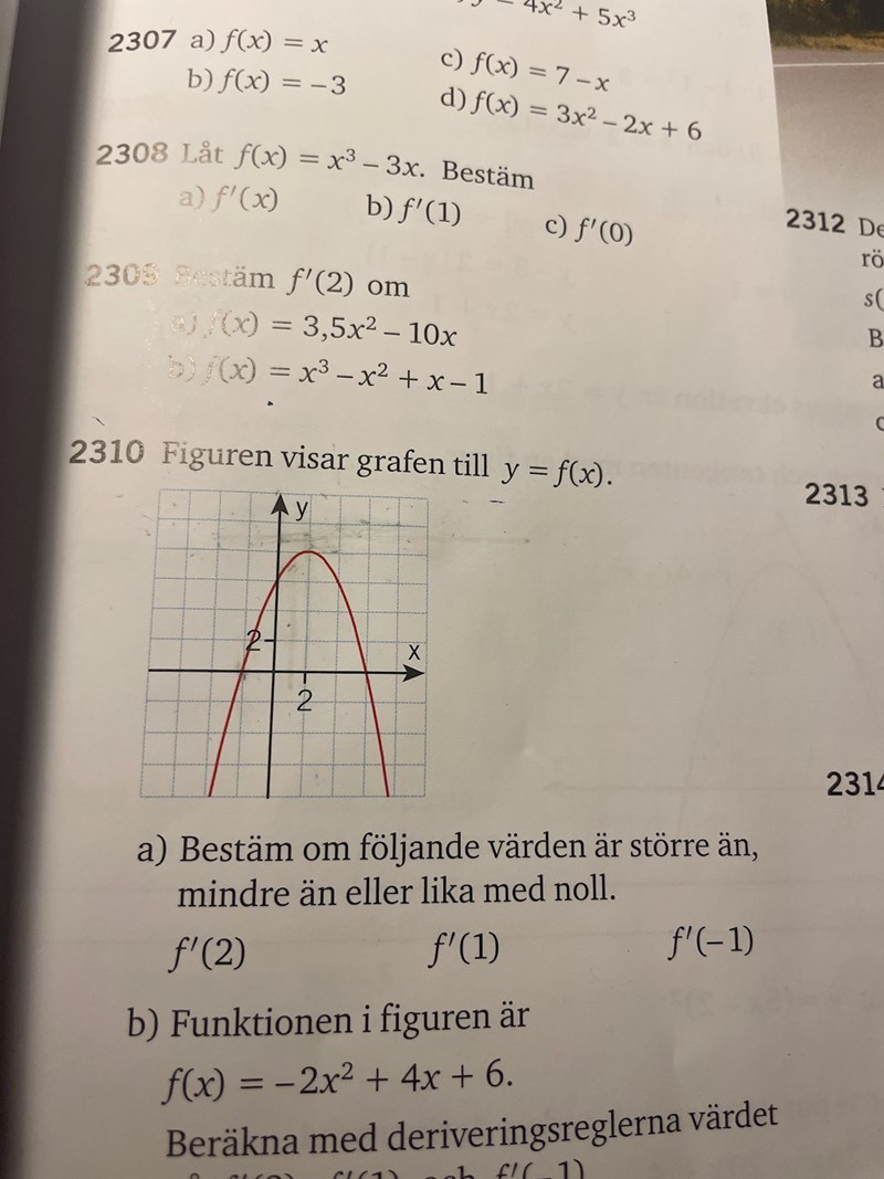 Jag svarade på att f’(2) = 0 och resten var jag nästan lika förvirrad av, så jag gav upp. Är det något som jag inte hade tänkt på?