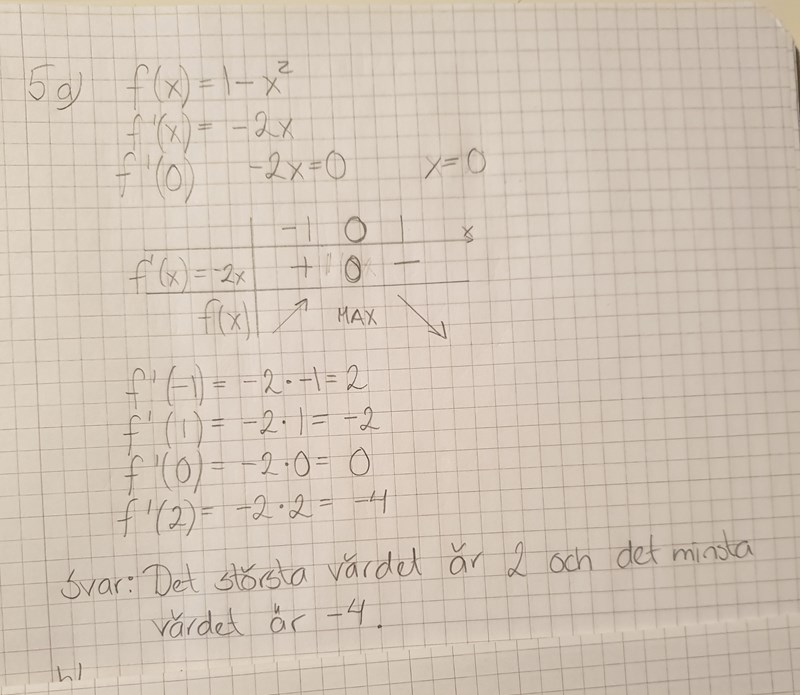 Uppgiften i sin helhet går ut på att man ska finna det högsta och lägsta värdet av funktionen.