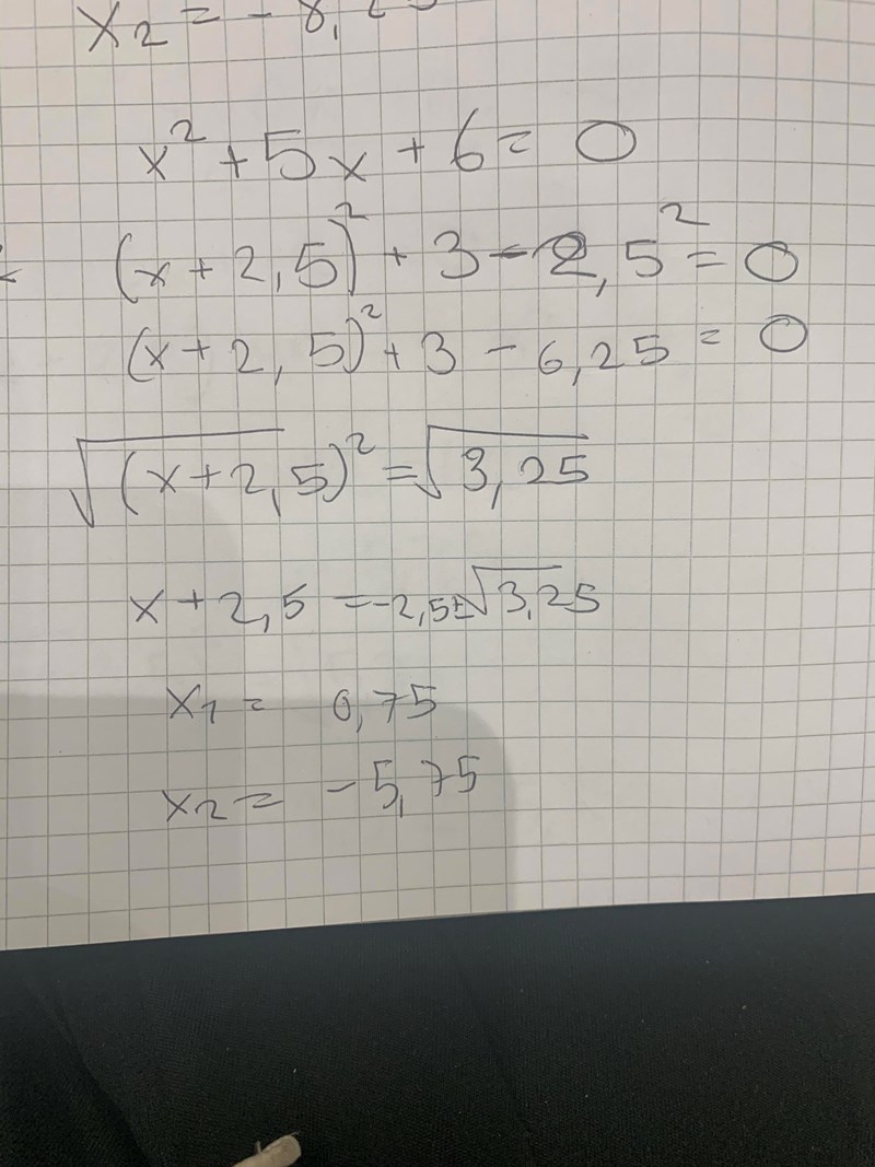 x^2 + 5x + 6,25 = ( x + 2,5 )^2 = -6 + 6,25