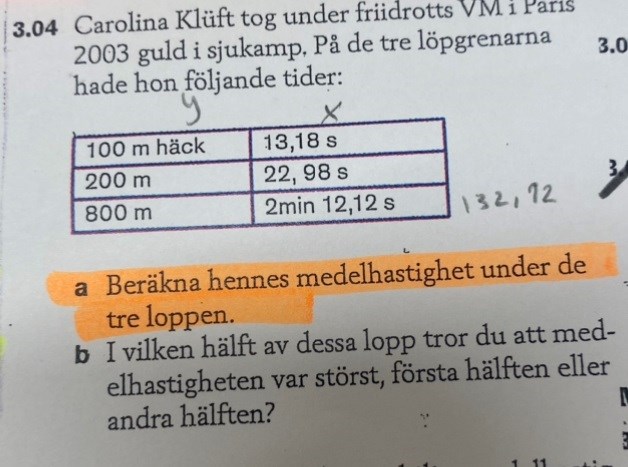 Yngve skrev:Dividera sträckan med tiden för vart och ett avbde tre loppen.