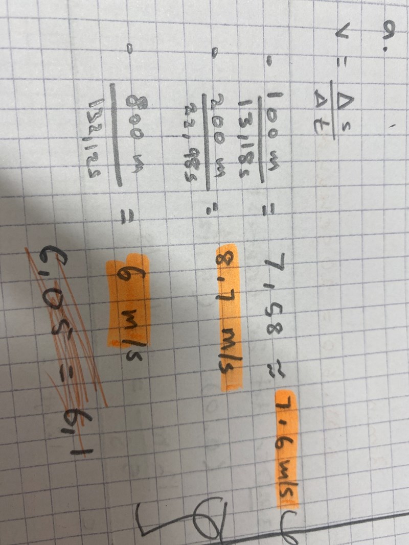 På a) 7,6 m/s