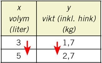 Kajsa är ute och plockar lingon. Hon har en våg med sig och ställer lingonhinken på vågen lite då och då. Hon skriver ned några värden i en tabell: