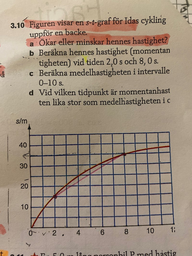 Gör sedan på samma sätt för momentanhastigheten vid t = 8 s.