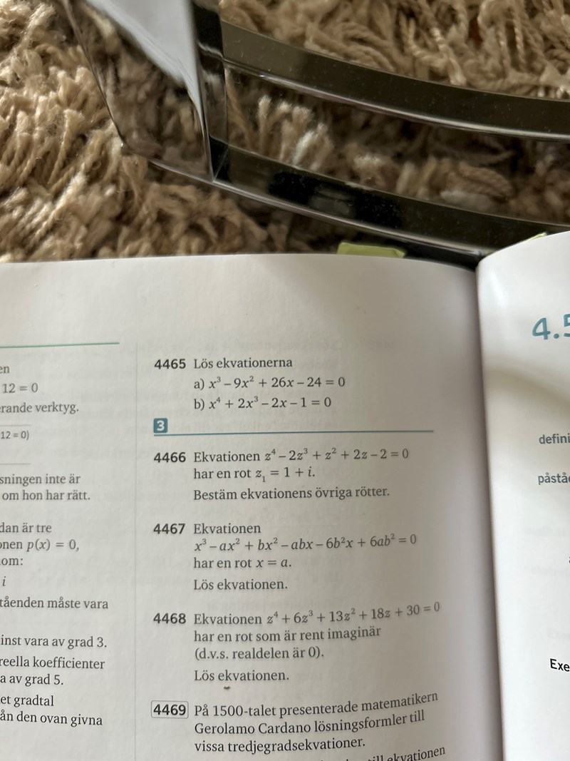 i första uträkningen visar jag att x = 1 är en rot, i nedre delen försöker jag visa att x = -1, i facit står det att x(2,3,4) är -1, men hur bevisar jag det? tacksam för hjälp!