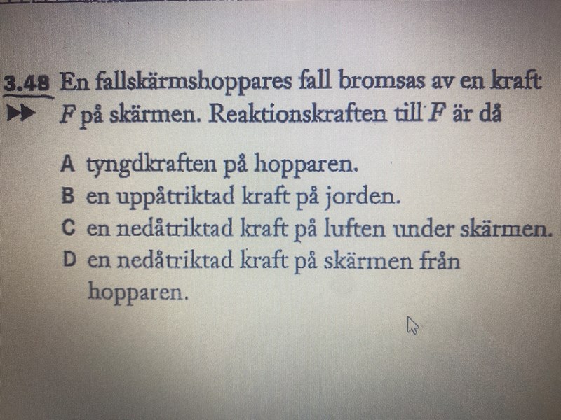 Dr. G skrev:Nej, reaktionskraften på tyngdkraften från jorden på hopparen är tyngdkraften på jorden från hopparen. Hopparen drar lika mycket i jorden som jorden drar i hopparen.