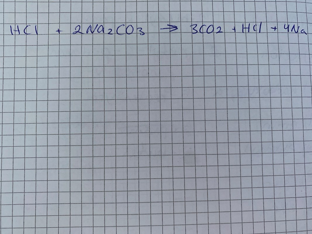 2HCl + Na2CO3 -------- 2NaCl + CO2 + H2O