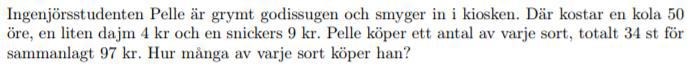 Har du skrivit fel på raden som börjar "Antal varor:"? Det finns 2 x men inget z i den ekvationen.