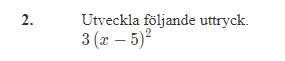Jag har skrivit ut 3(x-5)^2 = (3x-15)^2 = 3x^2 - 2(3*x*15) + 5^2