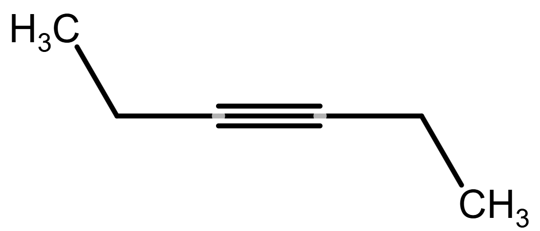 Jag skulle namnge den hex-3-yn (eller kanske 3-hexyn). Ids inte kolla IUPAC nu, men tror på det första. Prefix brukar man väl vika till substituenter som typ 1-bromo-... om jag minns rätt.