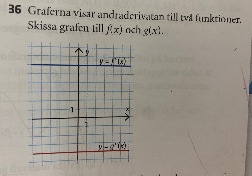 Macilaci skrev:Det här är en helt annan uppgift. Den säger att f''(x)=6 och g''(x)=-4 på (-6,6) mängden.