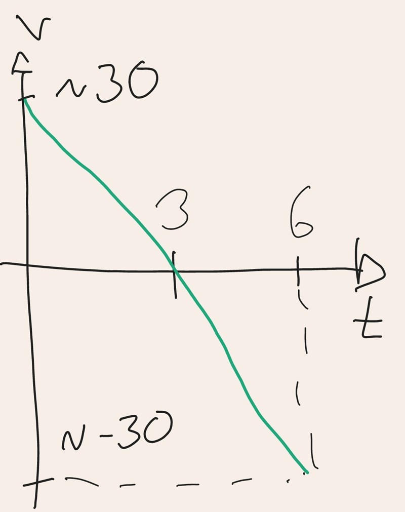 Ja. Rita v/t-grafen som en rät linje med konstant negativ lutning. Kalla starthastigheten för .