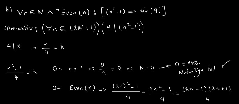 Smutstvätt skrev:Hur har du börjat? Du kan skriva alla n på formen . Vad får du om du sätter in detta i ? :)