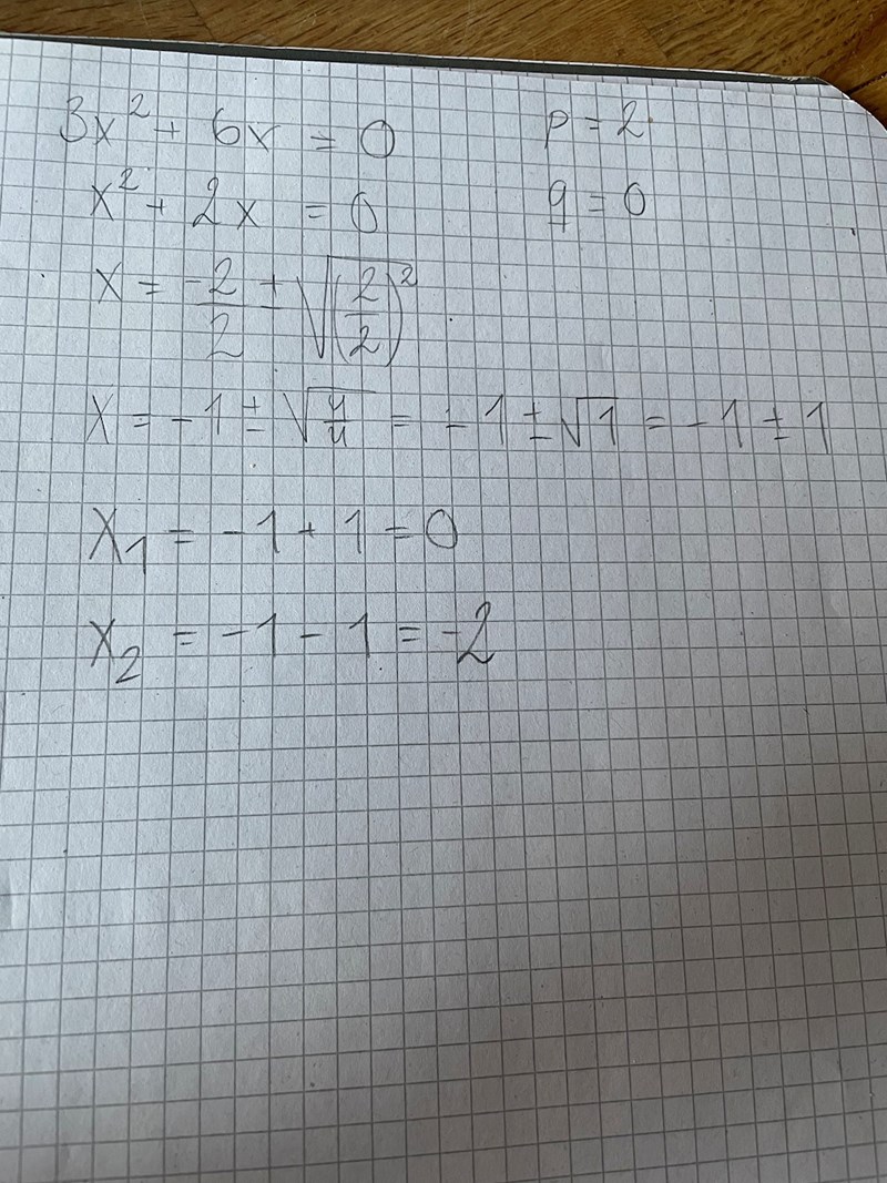 Jag försöker lösa 3X^2 + 6X = 0 med PQ-formeln. Men mitt svar skiljer sig från facit och jag lyckas inte komma till svars med varför.