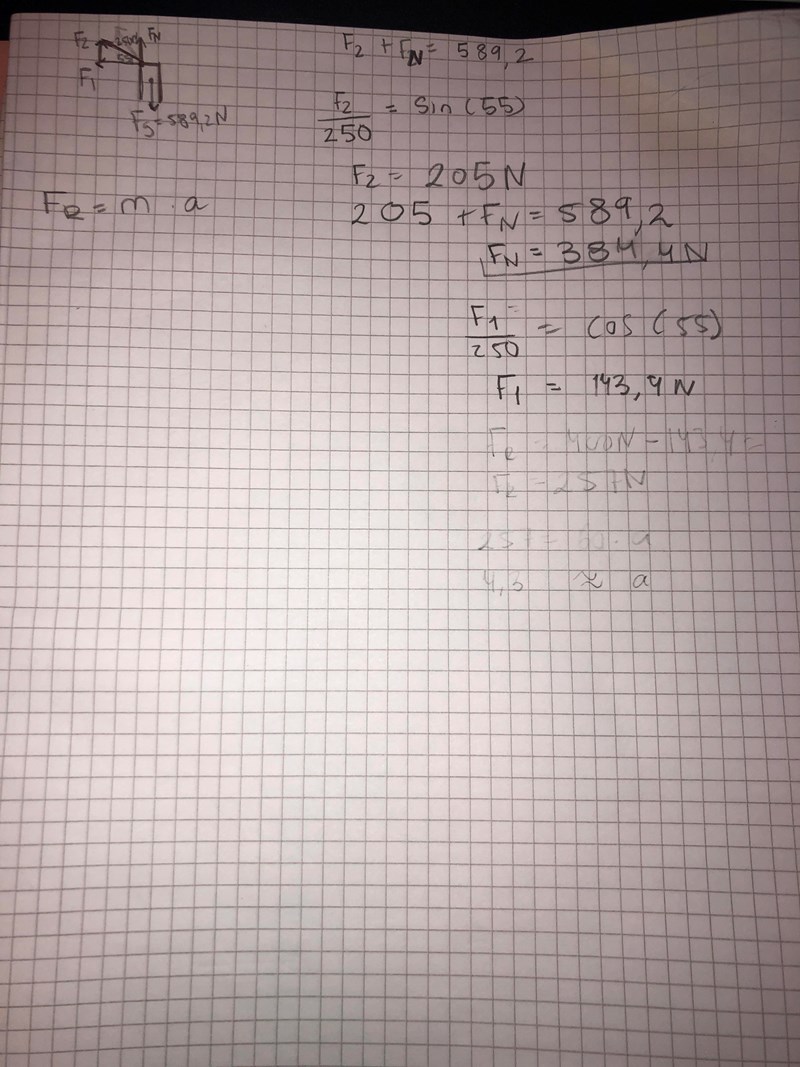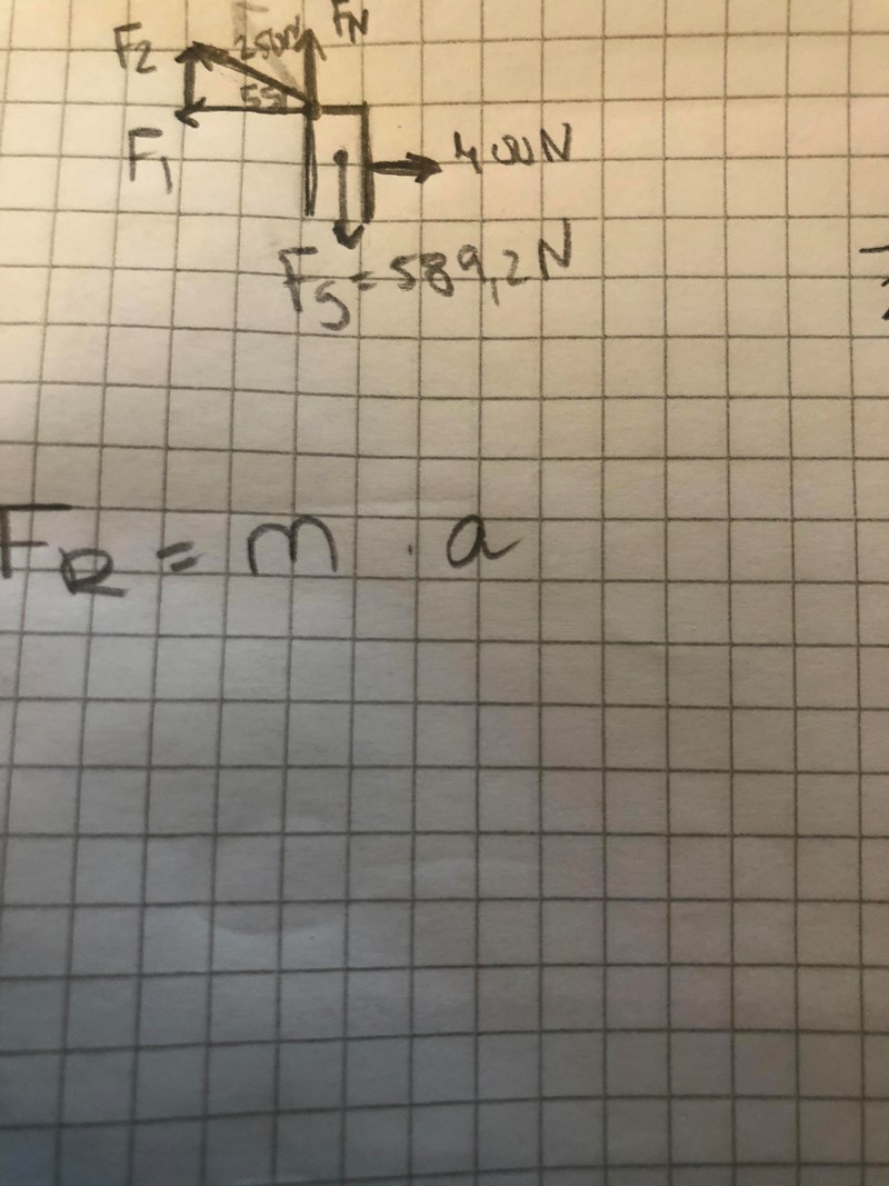 Det är sista Steget jag har fastnat på. Jag har komposantuppdelat resultanten 250N. Hur ska jag hitta F(res)?