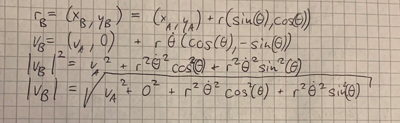 vB = (vA, 0) + rθ˙(cos(θ), -sin(θ)).