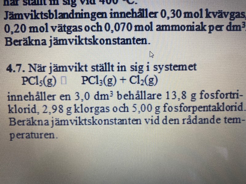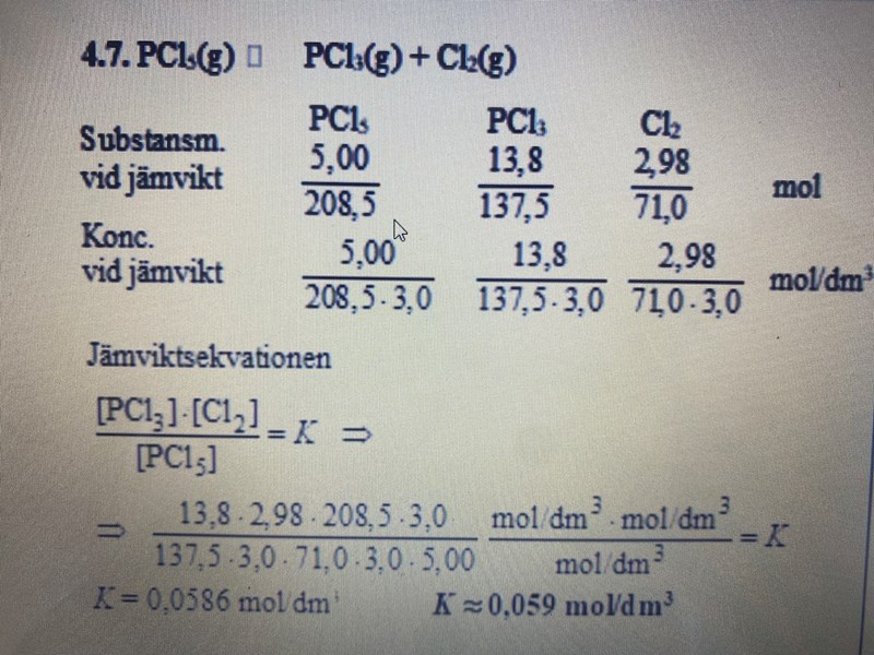 Hej! Jag förstår inte, koncentrationen är väll C= n/V oxh V är 3 för alla ämnen, varför tar man gånger vikten?