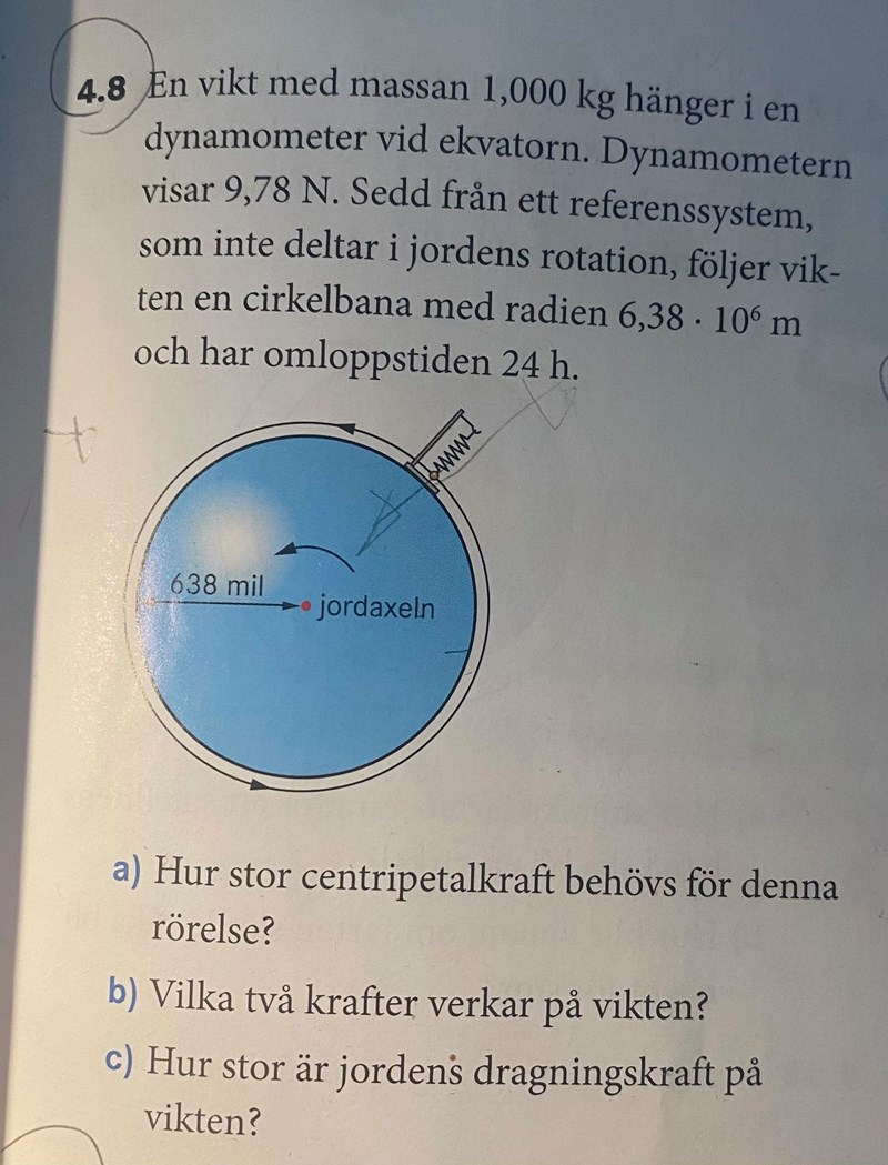Jag antar att de menar att centripetalkraften sätts samman av dessa två, och i c ska du räkna ut tyngdkraften.
