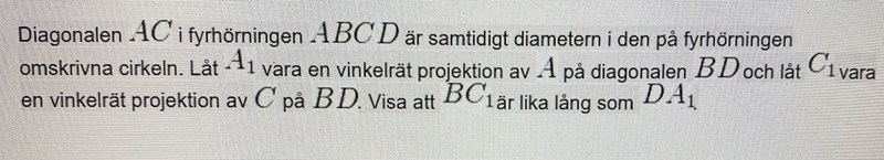 Hej, jag behöver hjälp med följande uppgift. Jag hade uppskattat det om någon kunde rita figuren som ingår i uppgiften, jag har lite svårt att förstå formuleringen av frågan och en visuell ritning hade hjälpt. Jag är heller inte helt med på vad vinkelrät projektion riktigt innebär?