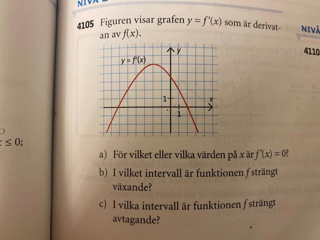 • Strängt växande <=> f'(x)>0 (positiv lutning)