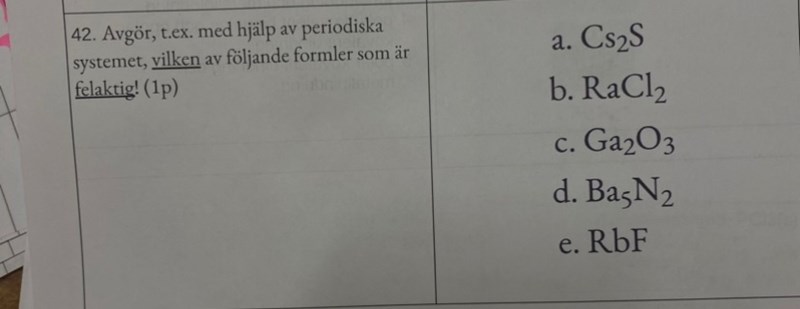 Så Cs2S och RaCl2 och RbF är rimliga. Fråga om du inte förstod det där.