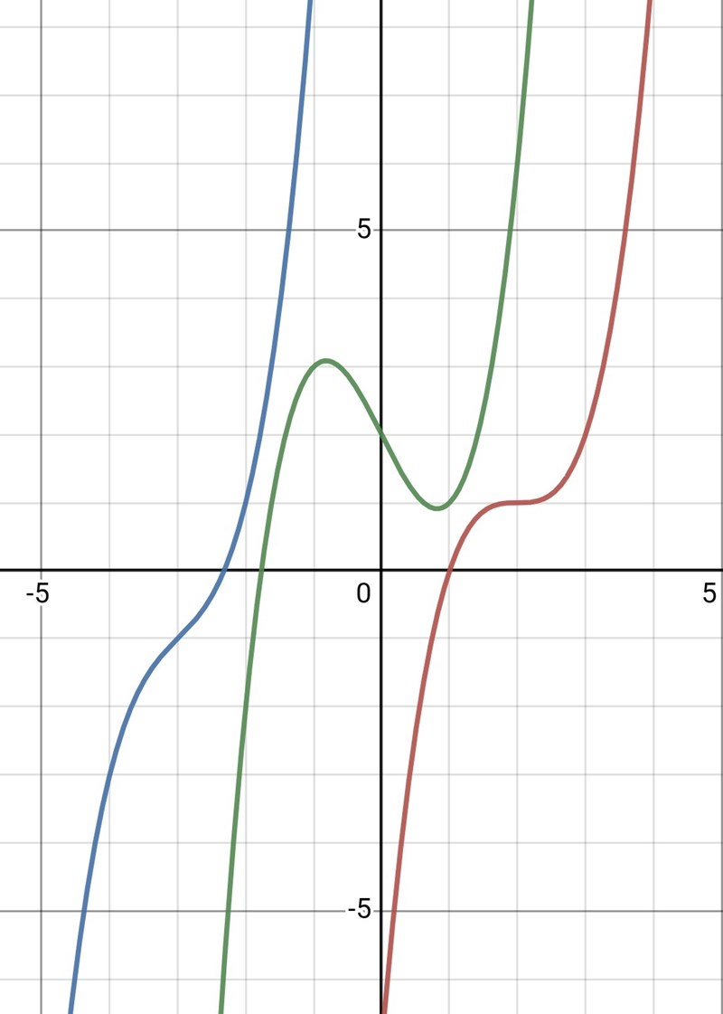 Men det du har ritat kan inte vara grafen till en tredjegradsfunktion eftersom den har både en terrass-, en minimi- och en maximipunkt.