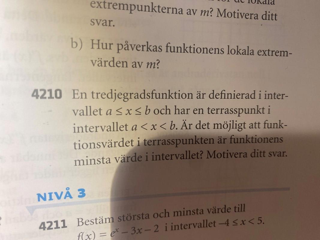 Och det här är väll en andragradsfunktion. men utifrån bilden, är inte terasspubkten funktionens minsta värdet nu 🫡