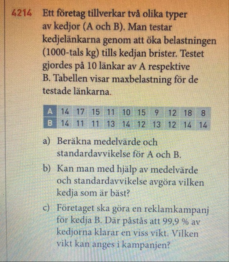 Jag har fastnat på c frågan på denna uppgift där jag inte riktigt förstår hur jag ska beräkna vikten. På a har jag fått följande