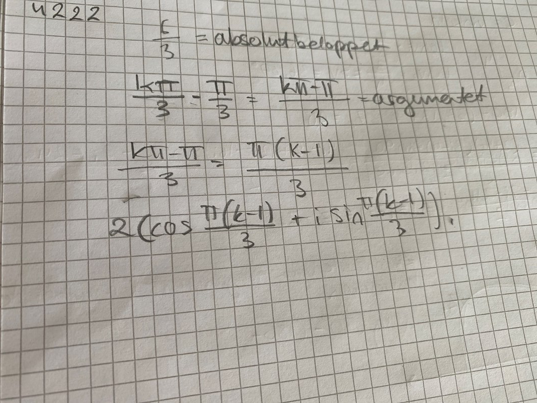 Då blir talet 2(-12 -i32) =R(cosφ -isinφ)cosφ=-1/2